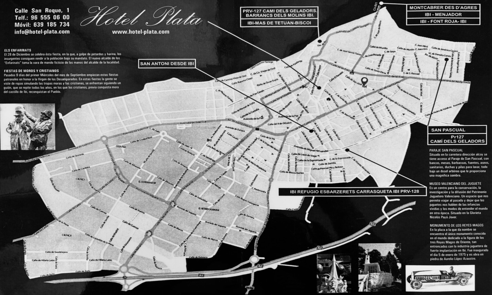 Al final de esta calle (Carrer Mossen Guillem) gire a la derecha y vera el Hotel Plata, el Parking está situado contiguo al Hotel y con acceso a recepción desde el parking.